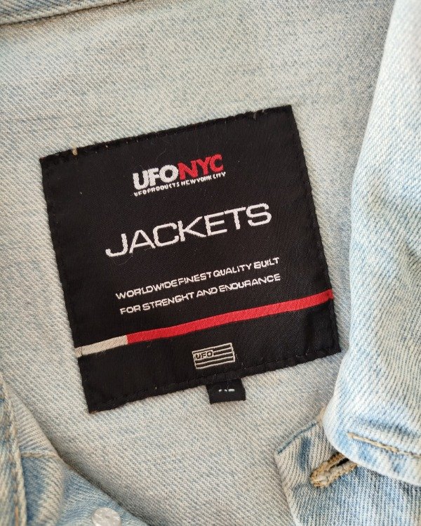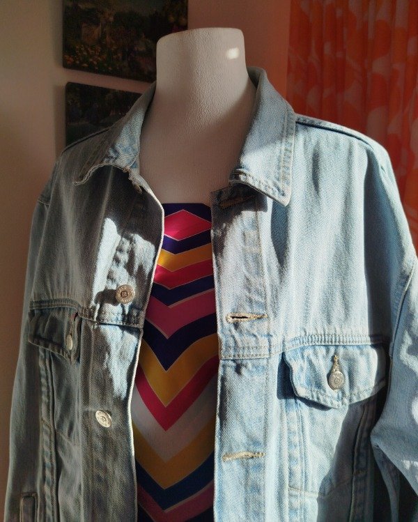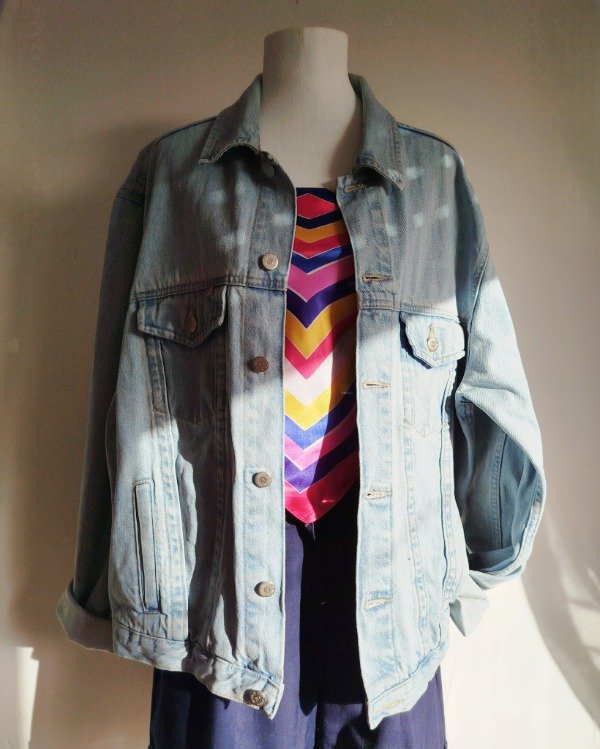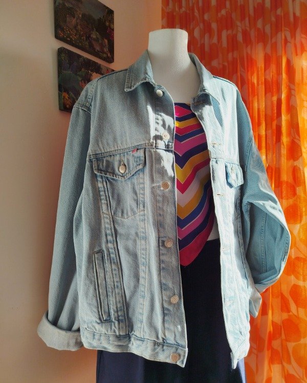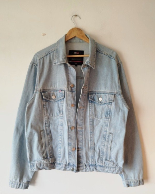 Chaqueta de jean, wños 90, corte oversize, celeste claro, tigida. Como nueva