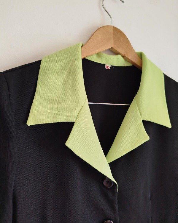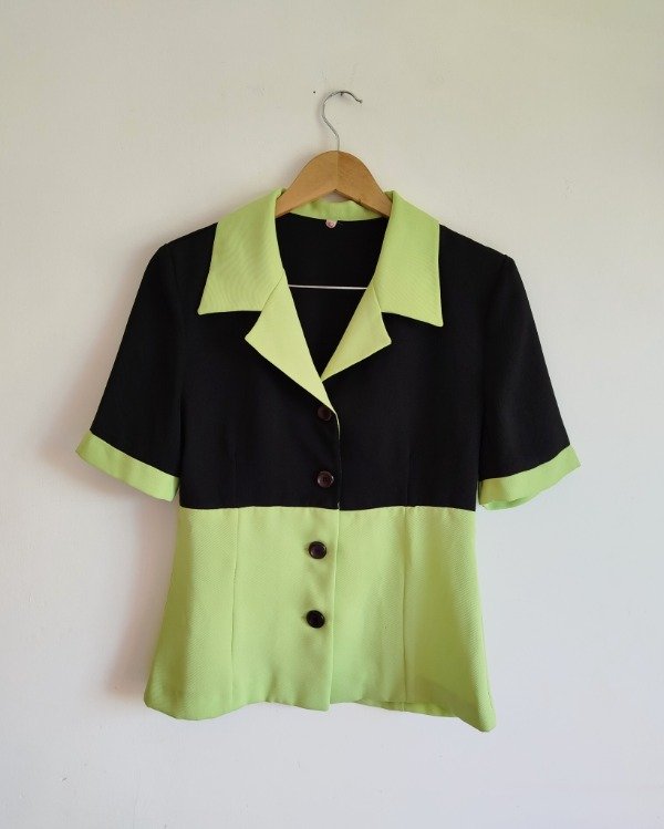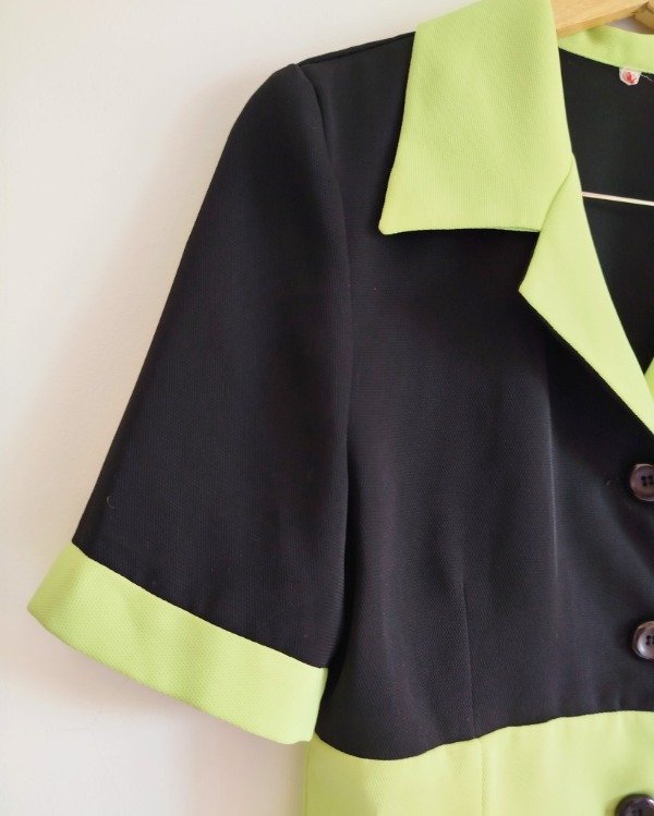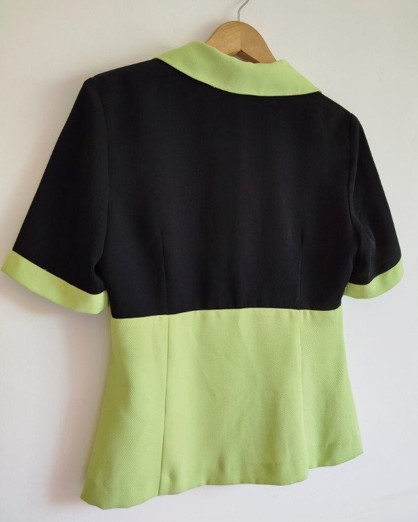Hermosa prenda , versátil, confeccionada en poliéster, combinado negro y verde lima, con cuerpo, puede usarse com chaqueta / blazer o camisa.