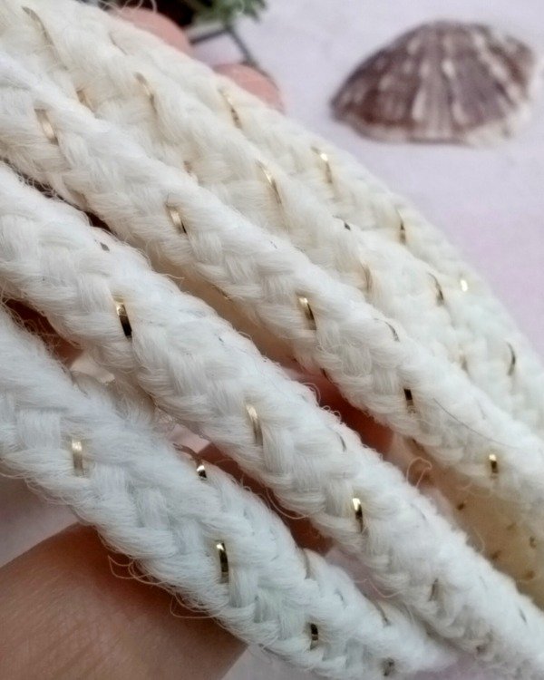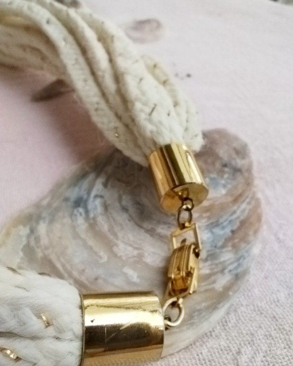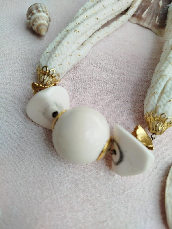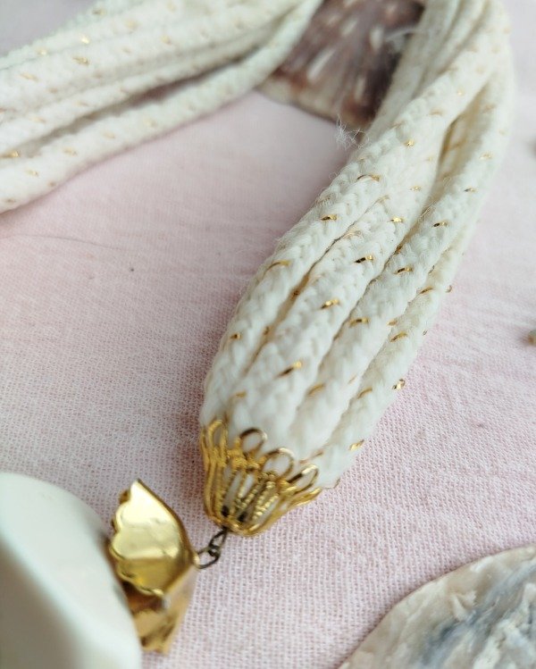 Collar corto , tipo gargantilla, combinado en metal, plástico duro y cordón de algodón con lurex.. Liviano. . Largo total 43cm