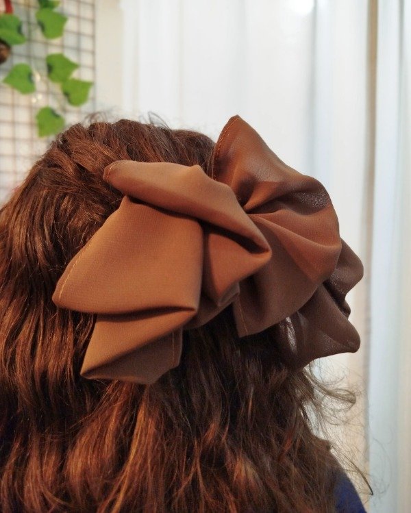 Hebilla francesa original años 90, moño de gasa color cacao, ñhebilla mediana vintage de buen agarre.