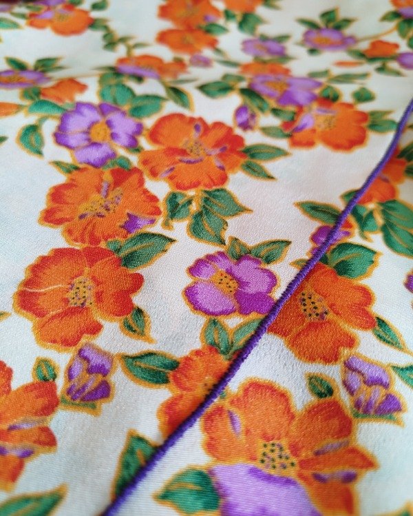 Falda vintage , poliéster estampado, liviana, con detalle cruzado al frente, largo midi.