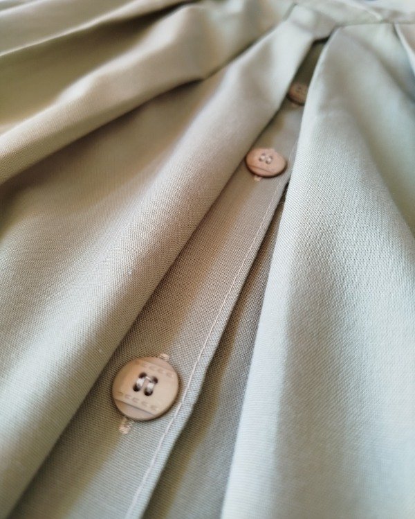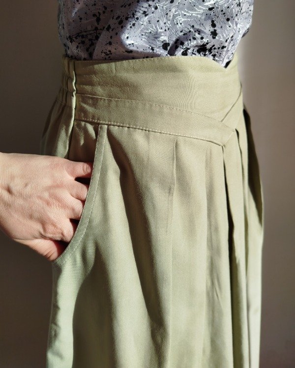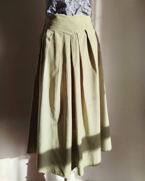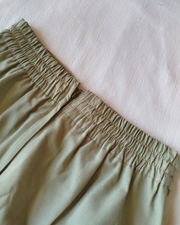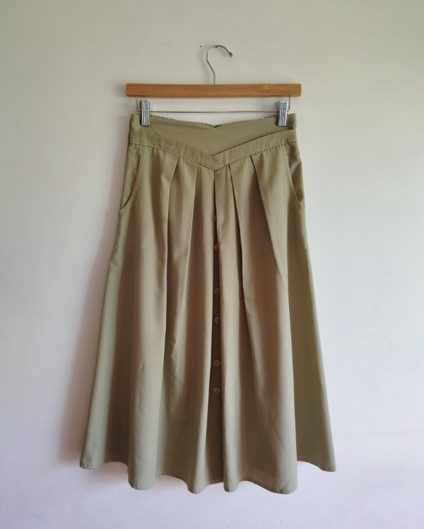 Falda años 90 super liviana, de algodón verde claro , cintura con elástico en la parte trasera . Bolsillos laterales