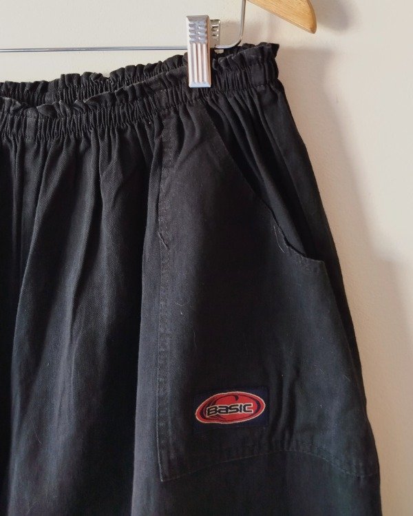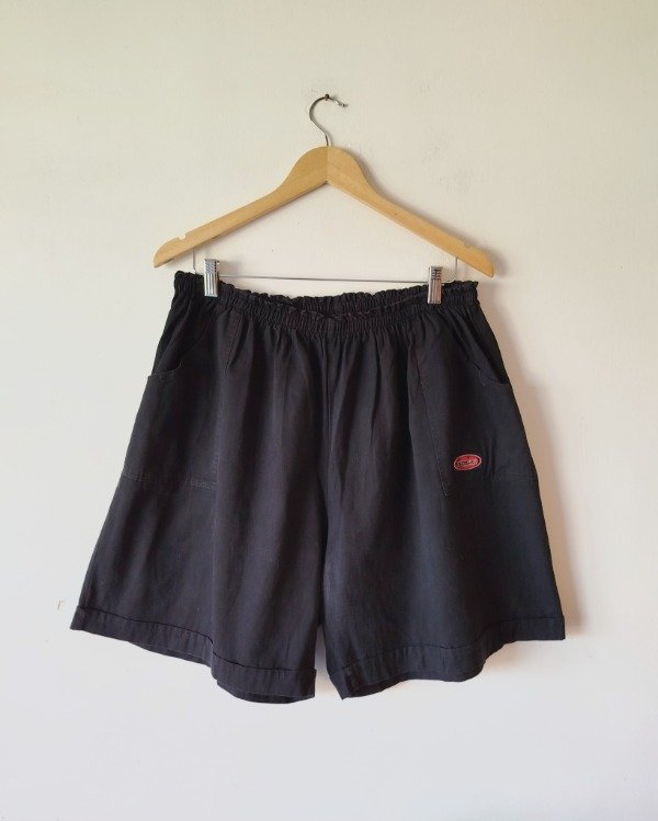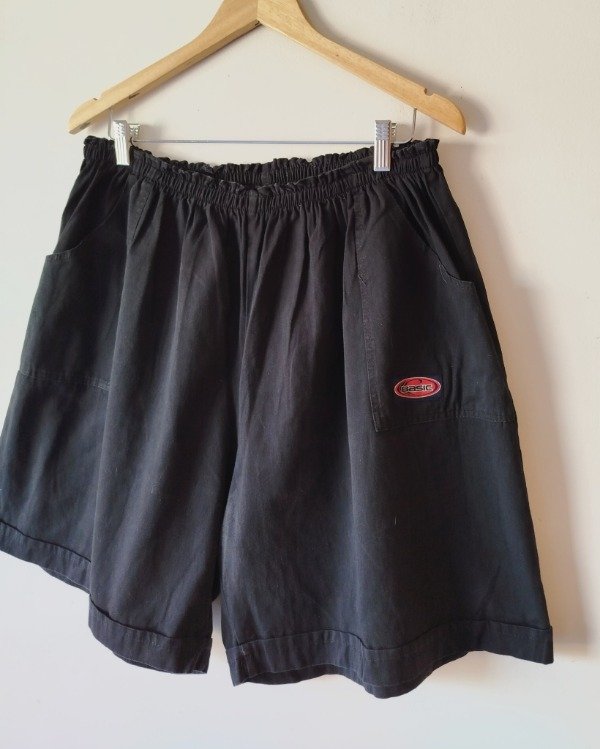 Bermuda , algodón, color negro,tiro alto, bolsillos laterales.. Cintura con elástico