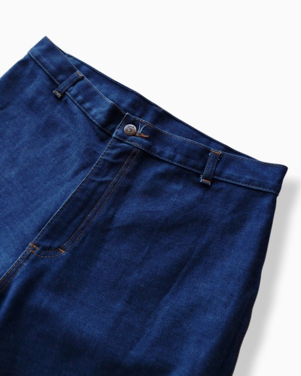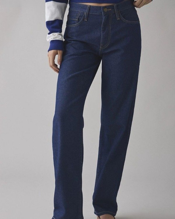 Pantalón de jean color azul oscuro, clásico, tiro alto, rigido