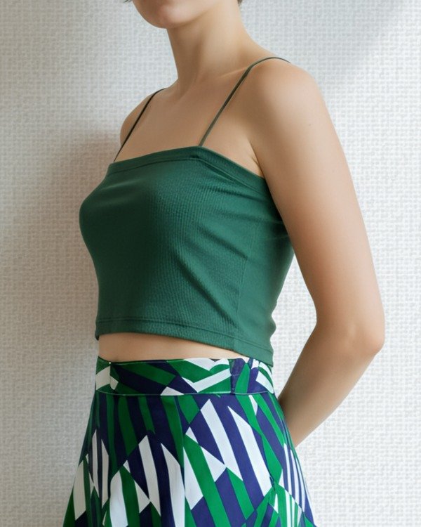 Crop top de lycra y algodón color verde oliva