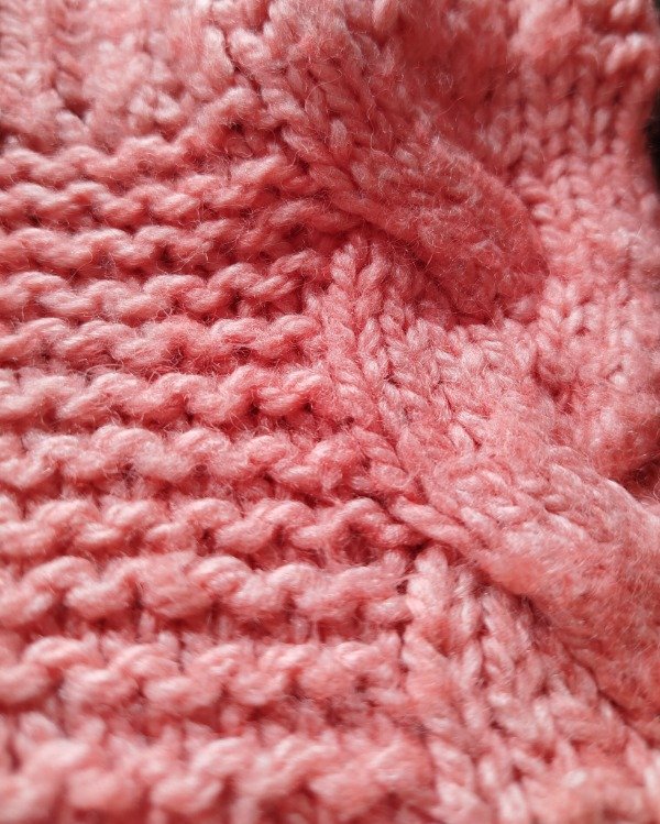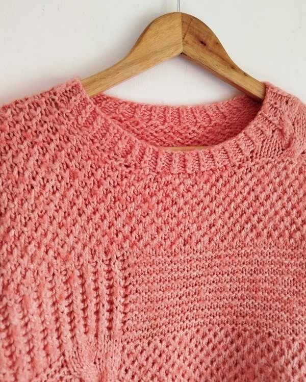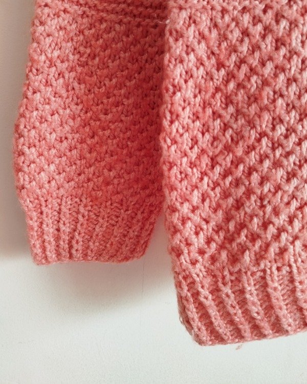 Sweater tejido artesanal a máquina, de laba color rosa.