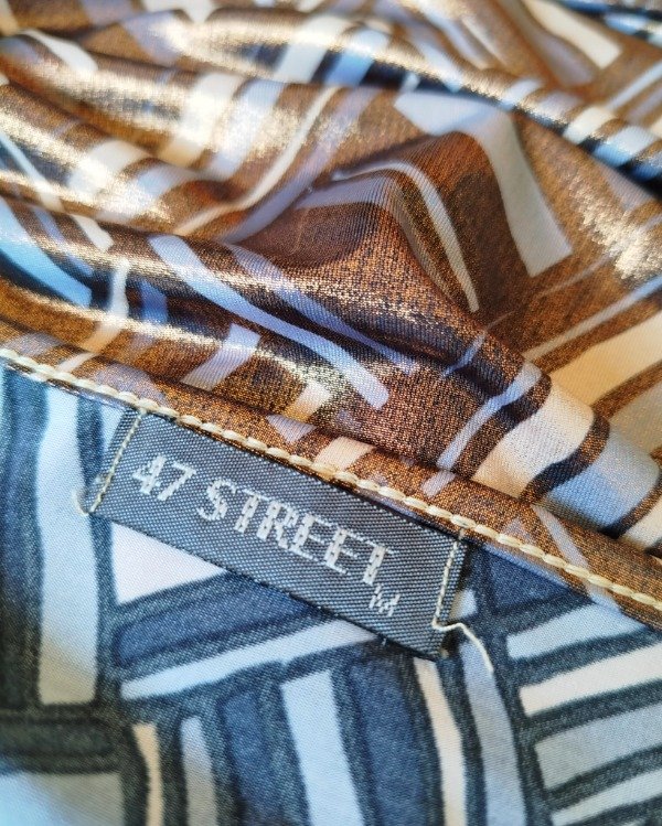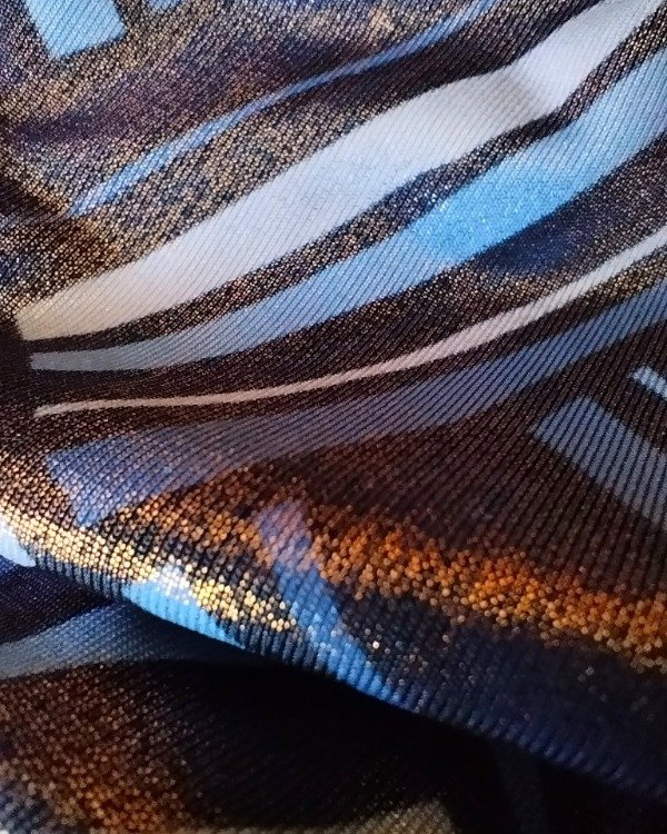 Vestido tipo solero, original de los dosmil. La tela esta compuesta por lycra y tela lamé, que le da un brillo tornasolado . Hermoso, liviano y suave . Detalles de puntilla en busto y ruedo.