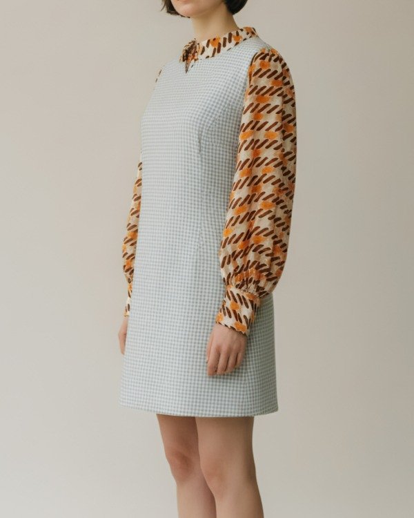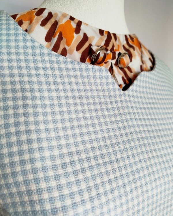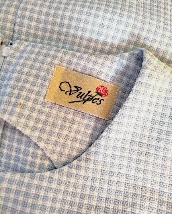 Vestido vintage, corte Jackie Confeccionado en algodón, trama tipo nido de abeja., en color blanco y celeste Corte al cuerpo. Cierre trasero